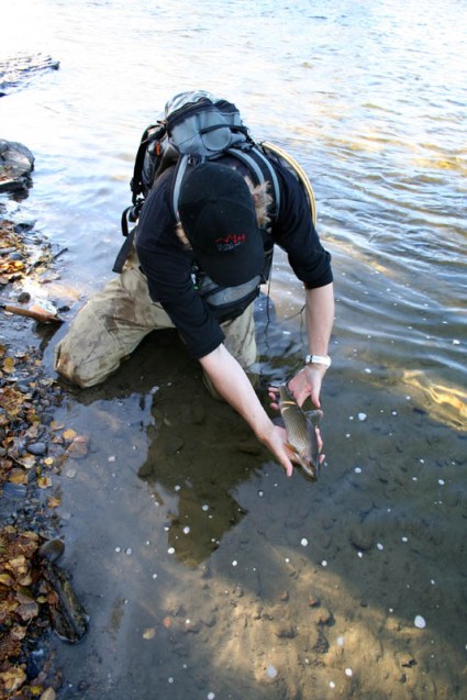 Seuraavina päivinä keskityttiin molempien jokien alaosien tutkimiseen ja kyllä niitä samoja harjuksia sieltä nousi. Isoimmalla mittaa 45cm. Ei mitään jättiläisiä mutta omakohtaset ennätykset sai kyllä rikki parikertaa.