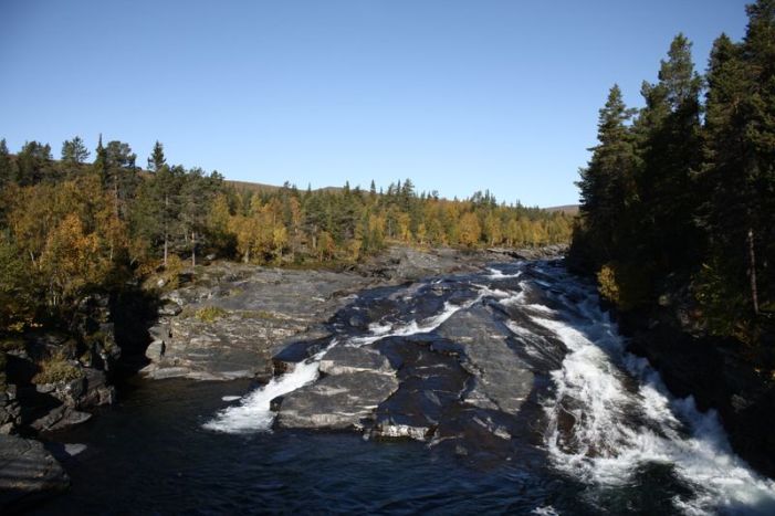 ”Missä kalat? Mitä tehdään väärin?!” Aloimme jo käymään epätoivoisiksi ja luonnonlakien analysointi alkoi muuttumaan salaliittoteorioiden pohtimiseksi. Ollaan me nyt ennenkin kirkkaissa vesissä kalastettu, että ei se nyt sitäkään voi olla! Koitimme kontata ja raahautua rantaan, mutta ei! Kyllä kalat nyt yleensä jotain pientä vihiä itsestään antavat, mutta nyt joet näyttivät olevan aivan tyhjänä. Meillä oli kuitenkin yksi valttikortti johon oli paljon odotuksia laitettu likoon – Sjöforsen. Tämä 12km (?) alue on tunnettu suurtaimenistaan mutta näin syksyllä tosiaan kokonaisuudessaan ”erikoisaluetta” jonne päästettiin vain 12 jannua/päivä. Oli virheellistä meidän osalta olettaa että lupia olisi vielä jäljellä pelkästään kylän ja mökkien tyhjyydestä johtuen. Tietysti paikka oli bookattu täyteen rauhoitukseen asti ja jälleen yksi pettymyksen sulka hattuun.