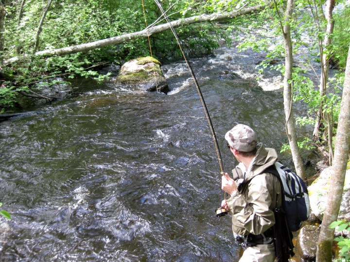 Koittihan se aika viimein kun pääsi viskomaan tinseliä Taimenkoskille. Tämä lähes perinteeksi muodostunut reissu on monesti ollut kesäkauden avaus ja usein hyvinkin tapahtumarikas. Hienointa on kuitenkin nähdä taimenien agressiiviset iskut tinselien perään niskoilla ja kivien edessä.