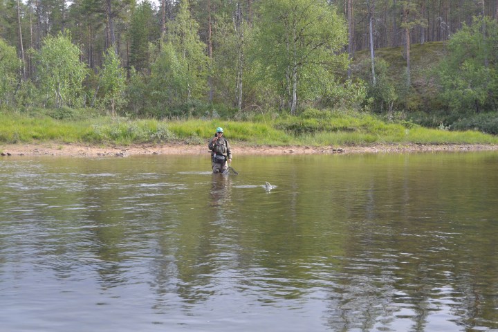 Kun Jyri oli Sartan jälkeen heitetty Kemin juna-asemalle ja arkisiin seikkailuihin, suuntasimme Karin kanssa kohti pohjoista. Tarkemmin sanottuna Urho Kekkosen Kansallispuistoa ja sen vesiä. Paikka on Ruodolle ennestään tuttu ja tämä taisi olla jo kuudes kerta kun joku meistä käy kyseisellä joella. Paikalliset ystävämme pyysivät, että vaalisimme yllä paikan salamyhkäisyyttä ja pitäisimme sen salassa, joten valitettavasti emme voi paikan nimeä blogiin laittaa. Tylsää, eikö totta.. Itse en kannata tällaista paikkojen salailua, varsinkin kun on perhokalastajista kuitenkin kyse, mutta lupaus on lupaus. Omasta mielestäni jos joku tuonne etelästä vaivautuu lähtemään, täytyy sen olla sen verran asiaansa omistautunut ihminen, että kunnoitusta jokea ja luontoa kohtaan löytyy jo ennestään. Hän olisi todennäköisesti hyvä vieras. Tällaiset kävijät toisivat paikkaan rahaa jota kovasti tarvitaan valvontaan. Vielä kun nämä henkilöt harjoittavat vahvasti C&R kulttuuria, säilyy taimenkantakin koskemattomana. Toivetta täytyy kuitenkin kunnioittaa ja pitää verhot kiinni tässä asiassa.