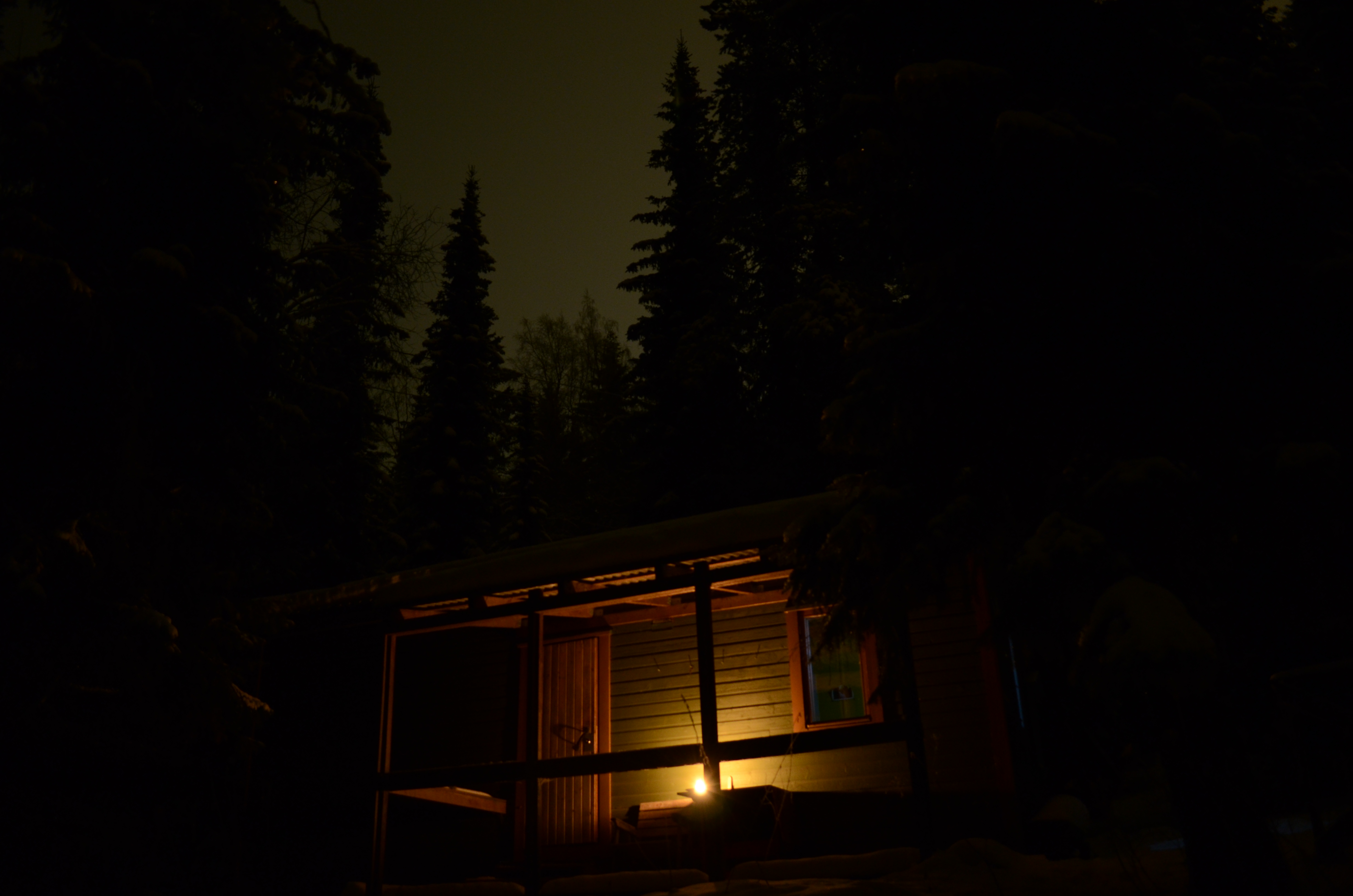 Tällä reissulla säät todellakin suosi ja jokunen taimenkin saatiin käytettyä haavissa. Pakkasta saatiin viikonlopun aikana reippaasti yli kymmenen astetta, joten vaparenkaiden kanssa oli tekemistä. Mökki kuitenkin lämpeni jälleen kamiinalla mukavasti ja pitkät pimeät illatkin saatiin rattoisasti kulumaan kehittelemällä toinen toistaan parempia valaisimia, kun myrskylyhdyt oli kaikki riekaleina.