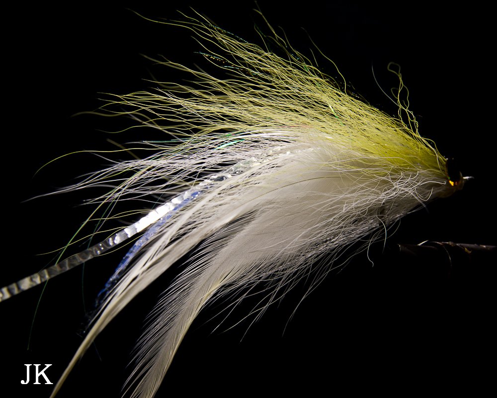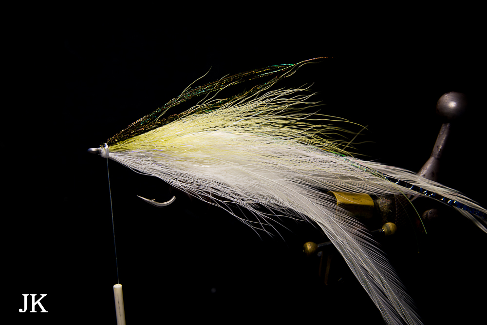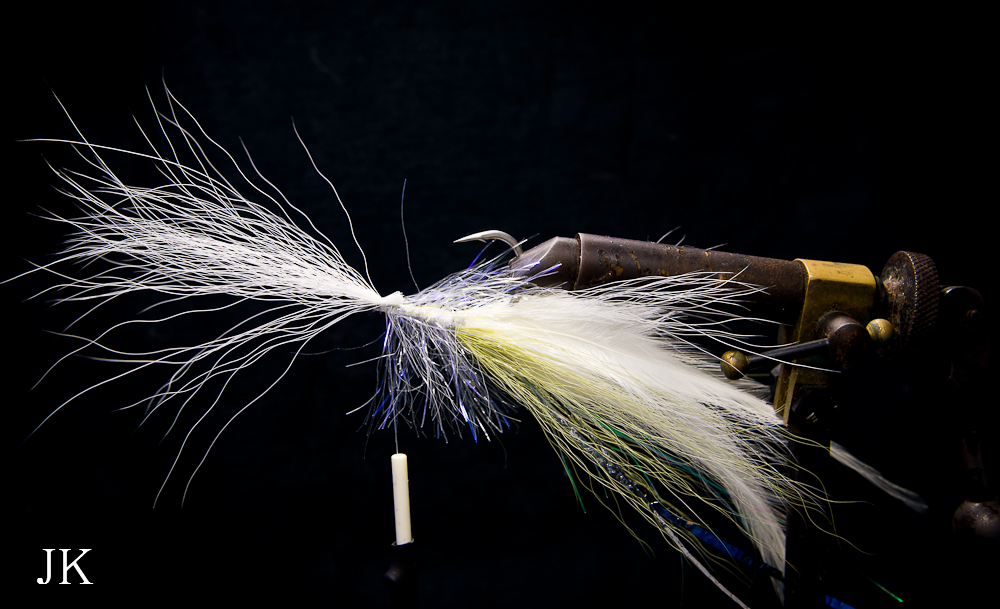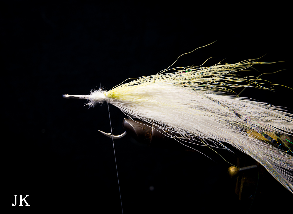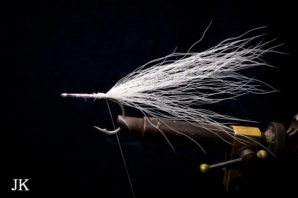Apupyrstö – Alle valkoinen bucktail, päälle oliivi.