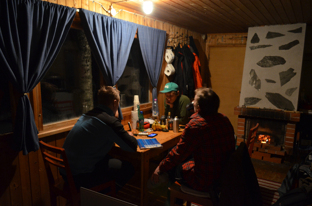 Kaverimme Janne oli vuokrannut meille kosken rannalla olevan Kalamajan viikonlopuksi, joten puitteet eivät olisi voineet olla paremmat. Janne oli Jyväskylästä ehtinyt ajella jo hyvissä ajoissa paikalle ja siihen mennessä kun ehdimme illalla paikalle, oli sillä jo käynyt haavissa jokunen kala. Koitimme vielä ehtiä heittää ennen pimeää, mutta laskeutuva pakkanen ajoi meidät pian saunomaan.