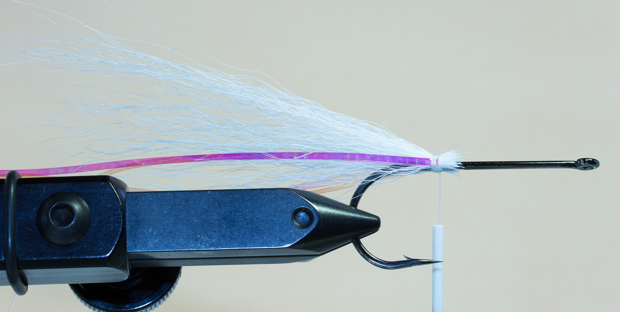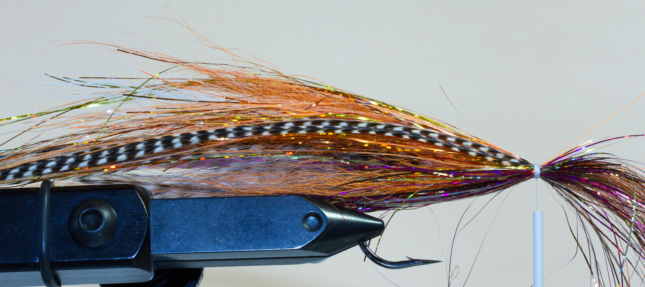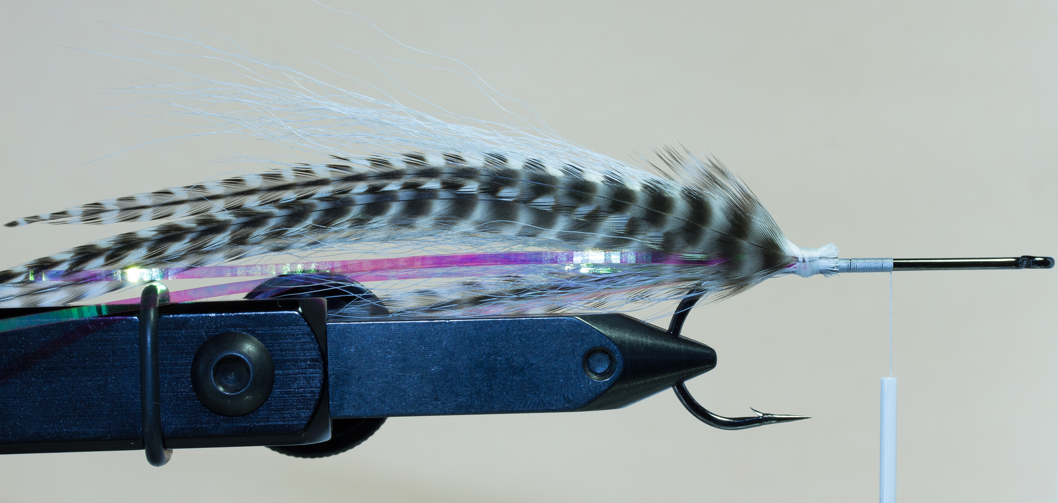Koukkuna voidaan käyttää mitä tahansa haukikoukkua, se on oikeastaan kiinni vain ja ainoastaan käyttäjästä ja mielipiteistä. Itse suosin pitkiä ja isoja koukkuja (#4/0 – 9/0) joihin saa helposti sidottua useamman siiven, mutta olen nähnyt todella hienoja ja kalastavia perhoja sidottavan lyhytvartiseen haukikoukkuun, kuten TMC600SP-3/0. Yksi tärkeimmistä asioista on painaa koukun väkänen alas ennen kuin aloitat kalastamisen, koska se helpottaa kalanvapauttamista sekä vahingoittaa kalaa mahdollisimman vähän.