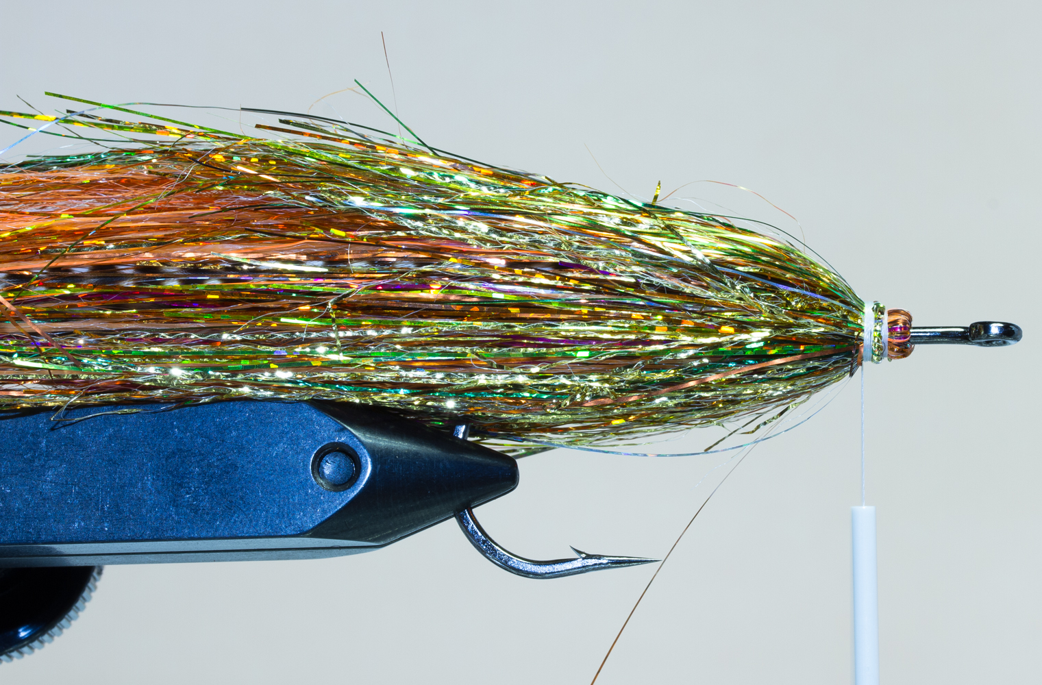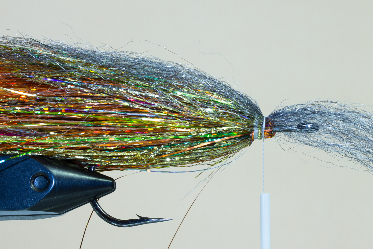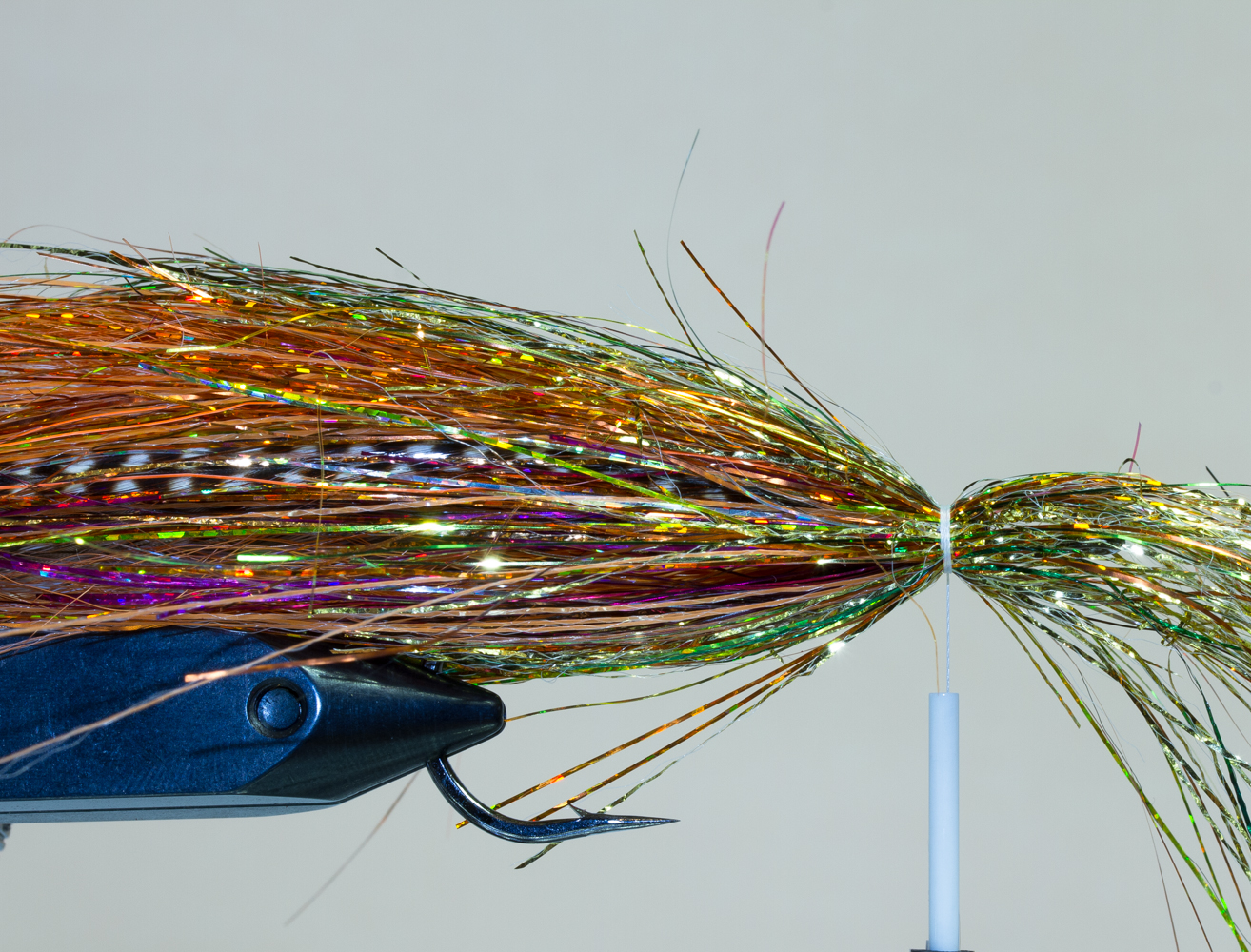 Koukkuna voidaan käyttää mitä tahansa haukikoukkua, se on oikeastaan kiinni vain ja ainoastaan käyttäjästä ja mielipiteistä. Itse suosin pitkiä ja isoja koukkuja (#4/0 – 9/0) joihin saa helposti sidottua useamman siiven, mutta olen nähnyt todella hienoja ja kalastavia perhoja sidottavan lyhytvartiseen haukikoukkuun, kuten TMC600SP-3/0. Yksi tärkeimmistä asioista on painaa koukun väkänen alas ennen kuin aloitat kalastamisen, koska se helpottaa kalanvapauttamista sekä vahingoittaa kalaa mahdollisimman vähän.