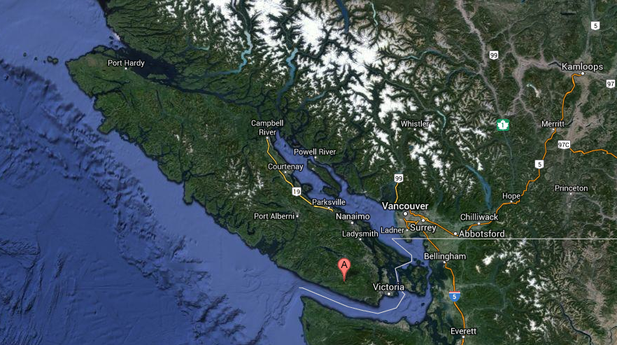 Matka pääsi lentokentältä alkamaan siis noin 20.15 paikallista aikaa, ja saimme kuulla, että viimeinen lautta Vancouver Islandille lähtee 21.30 toiselta puolelta kaupunkia. Keskustan läpi huristeltiin ja kerettiin hyvin. Lauttamatka kesti noin 1½ tuntia ja matka sai jatkua taas autolla. Olimme päättäneet, että ensimmäinen yö vietetään Qualicum bay:n alueella ja seuraavana päivänä kalastetaan lähialueen jokia. Emme löytäneet avoinna olevia motelleja, joten jouduimme nukkumaan autossa.