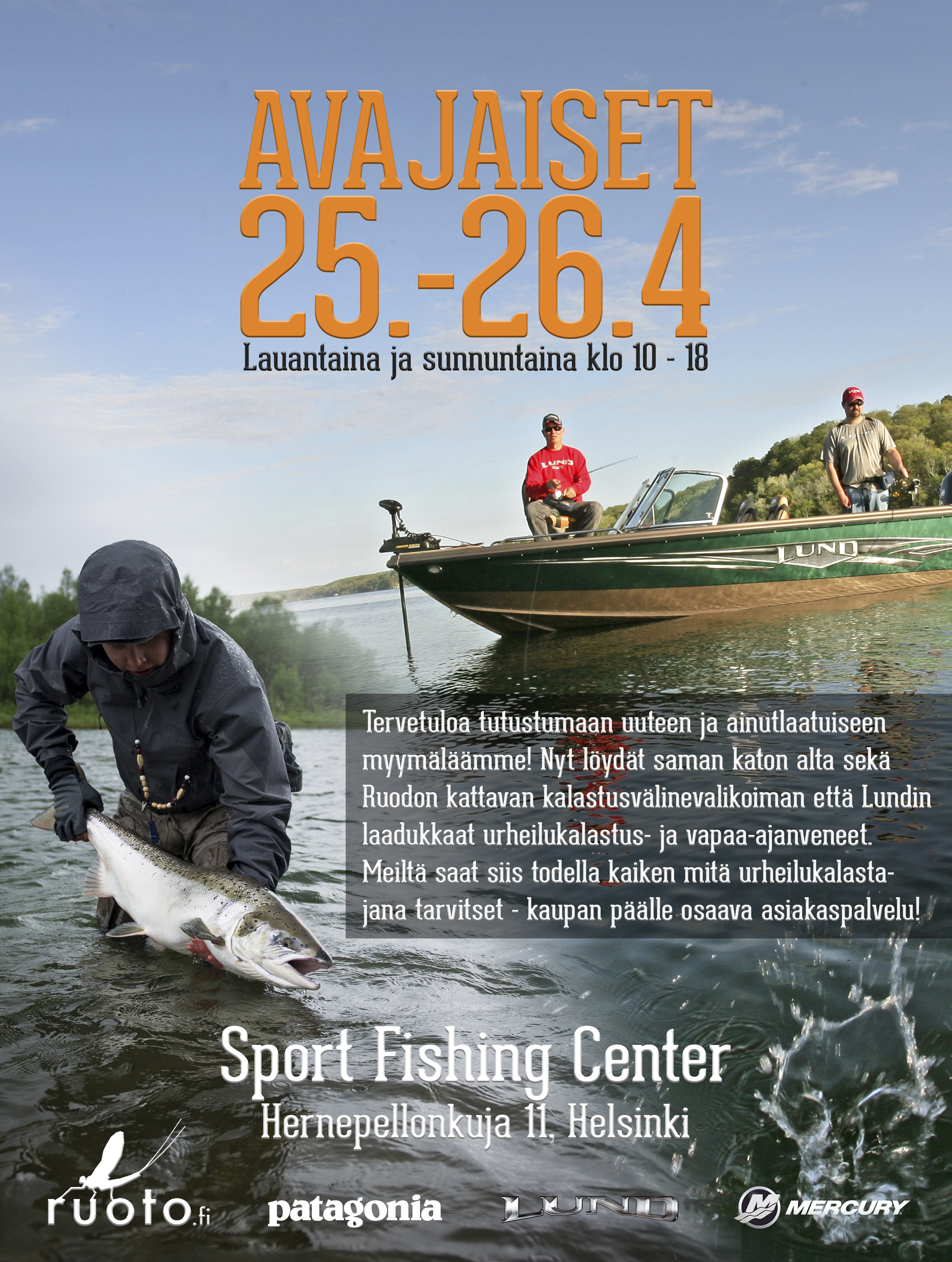 Uuden Ruoto Shopin avajaiset järjestetään uuden myymälän osoitteessa, Hernepellonkuja 11, ensi viikon lauantaina ja sunnuntaina. Samalla uusin yhteistyökumppanimme Lund Boats Finland avaa uudet toimitilansa Ruodon kanssa samaan kiinteistöön. Lund-urheilukalastusveneiden lisäksi löydät heidän uusista tiloistaan myös Mercury-moottorit, Lowrance-karttaplotterit sekä Motor Guide -sähkömoottorit.