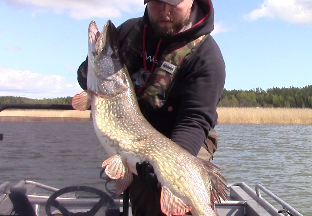 Kala riuhtoi päätänsä edestakaisin voimalla, mutta arvioin sen alkuun vain reilu femmaksi. Pumpatessani elukkaa lähemmäksi venettä alkoikin se tuntua todella painavalta ja jurotteli hetkittäin paikallaan ravistellen päätänsä pinnassa. Broidi kaivoi haavin esiin ja kahmaisi varmoin ottein valtavan hauen sen uumeniin. Kala olikin yllättävän paksussa kunnossa, luultavasti vain osittain kuteneena. Mittausten ja punnausten jälkeen saatiin painoksi 11,48 kg ja pituudeksi 112 cm! Uusi recordi hauki oli nähnyt päivänvalon ja tunnelma veneessä epäuskoinen.