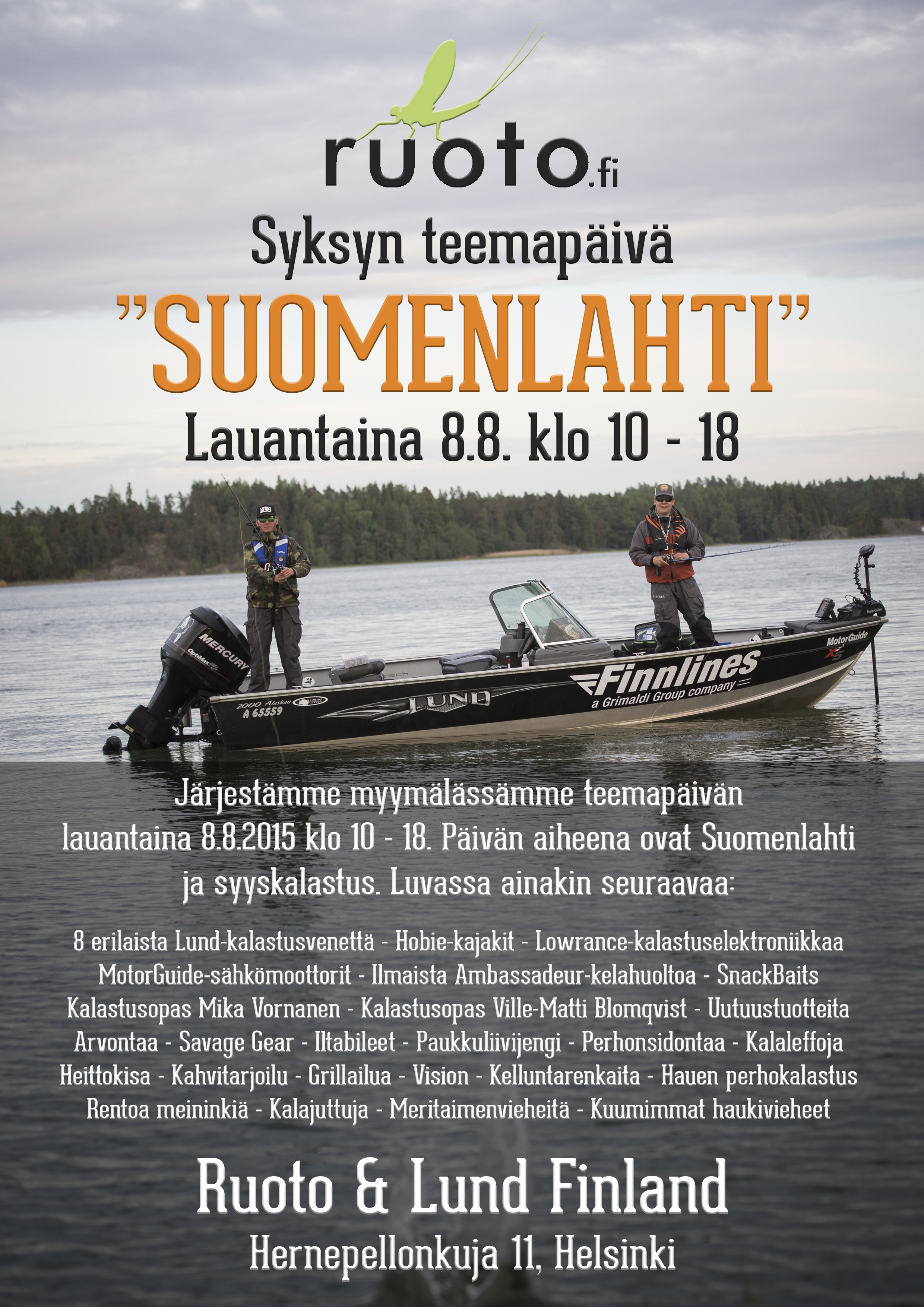 Järjestämme myymälässämme teemapäivän lauantaina 8.8.2015 klo 10 – 18. Päivän aiheena ovat Suomenlahti ja syyskalastus. Kalamiesten päiden menoksi luvassa ainakin seuraavaa.